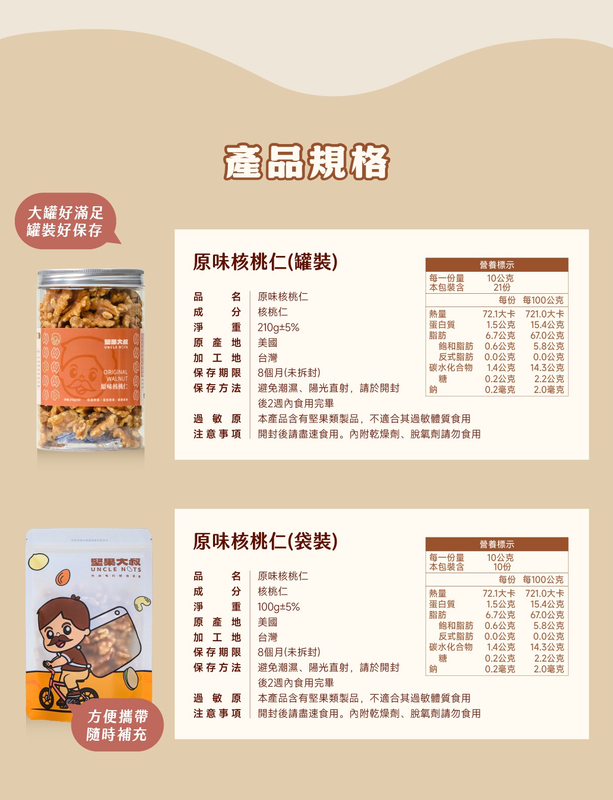 ✓ 低溫慢烤鎖住核桃天然的原始風味