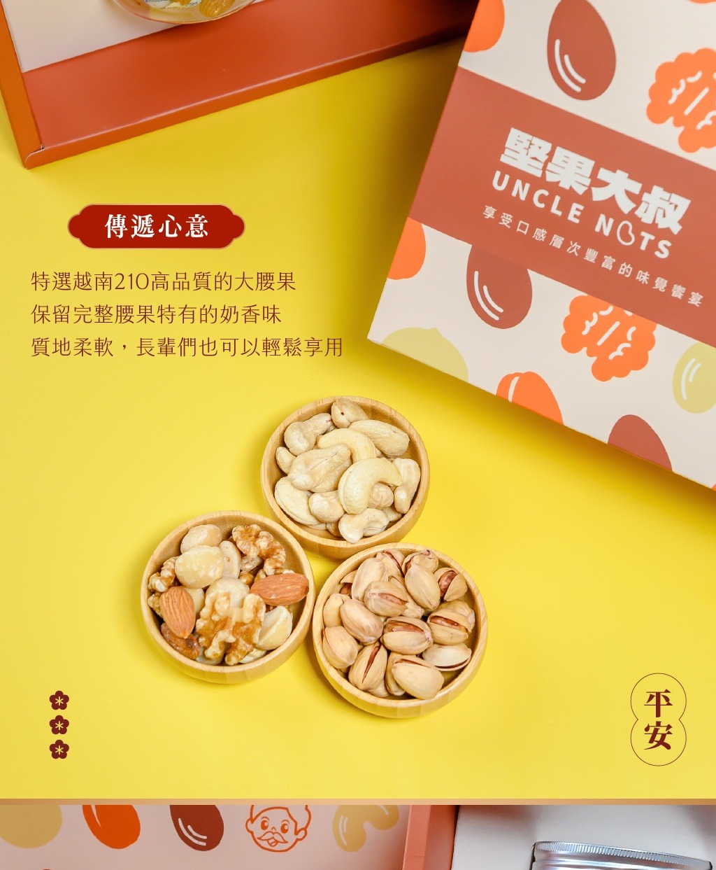內含:綜合人氣堅果大罐+原味烘焙腰果小罐+玫瑰鹽開心果小罐