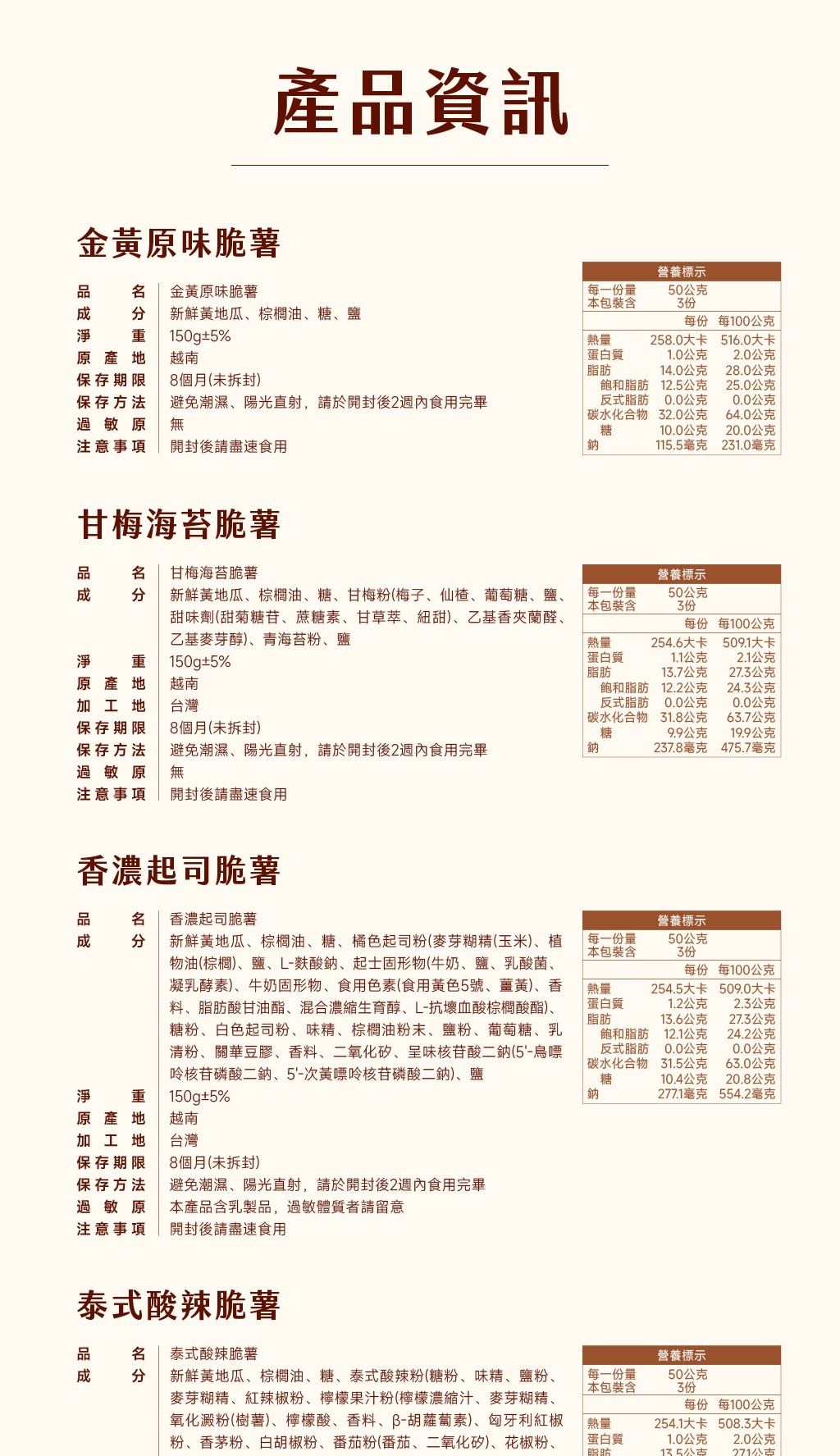 淨重 : 150公克 原產 : 越南 加工 : 台灣 保存期限:8個月(未開封狀態)