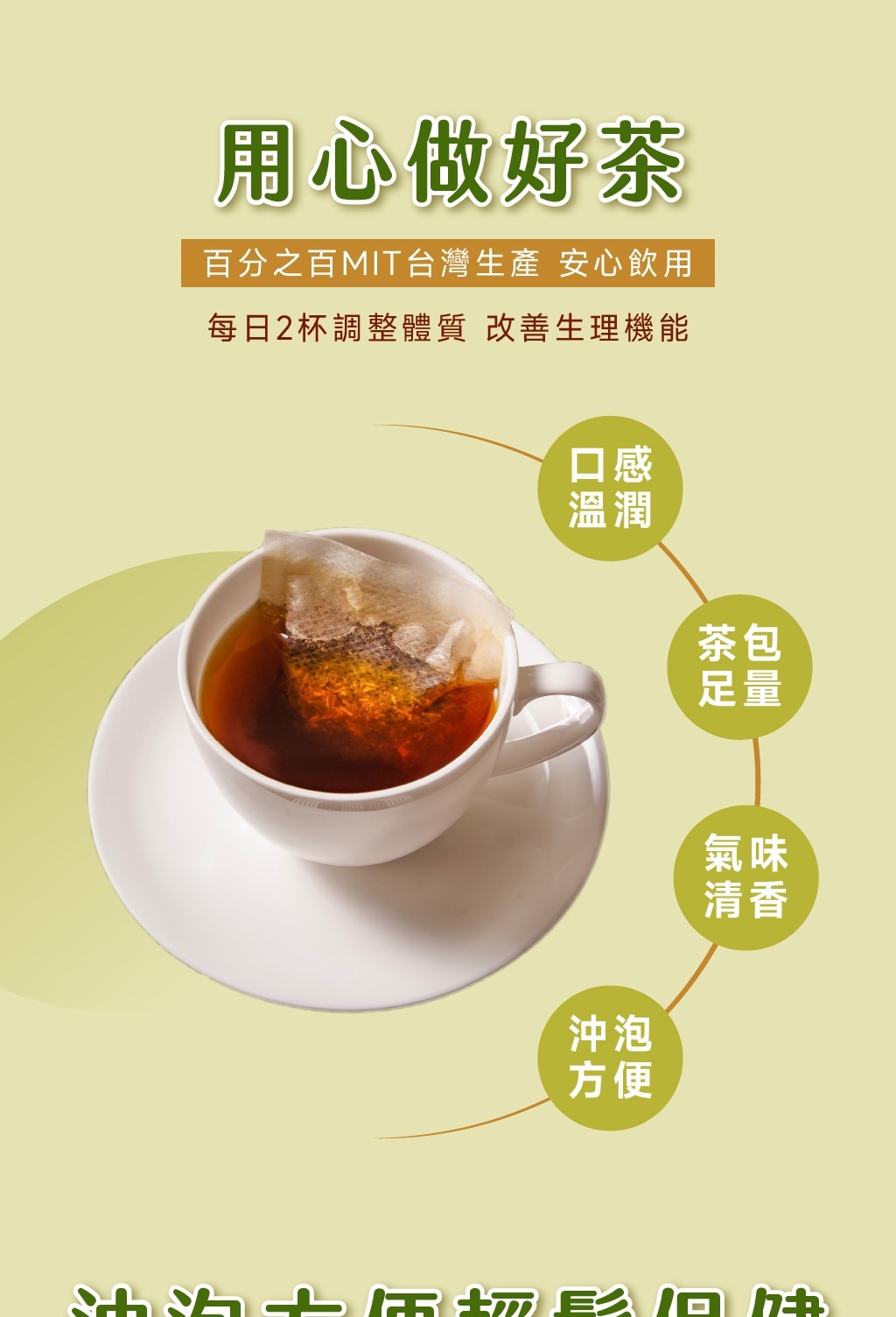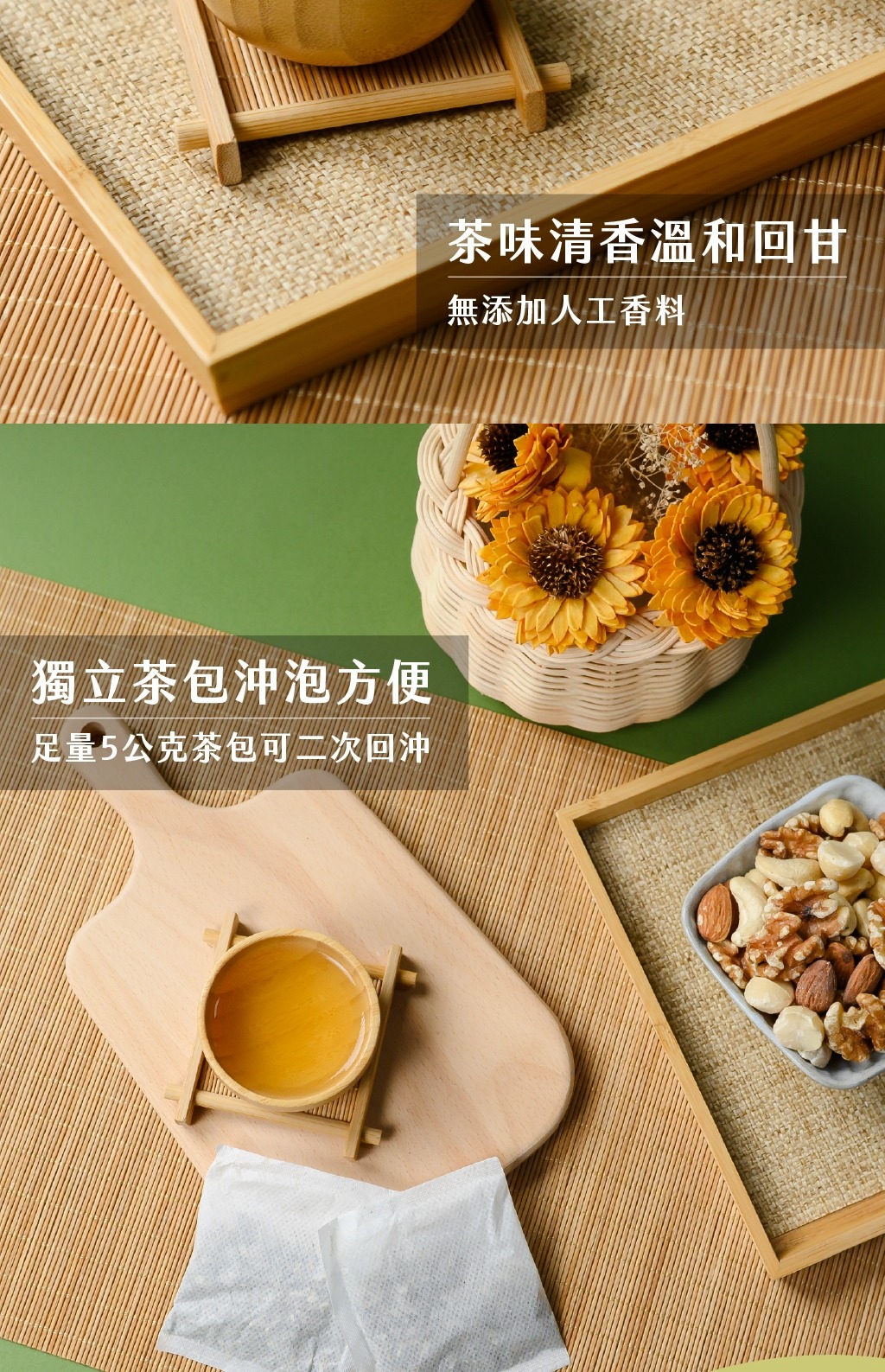 產地 : 台灣 茶包重量 : 5公克 每盒茶包數 : 26包 保存期限:2年 (未開封狀態) 素食 : 全素